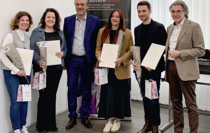 Foto oben: v. l. n. r.: Corinne Hörndli, Marisa Marques Madeira Pinto, Damien Ojetti, Zentralpräsident, Nora Strahm, Jan Riedo, Danilo Tomasini, Leiter Kommission QS