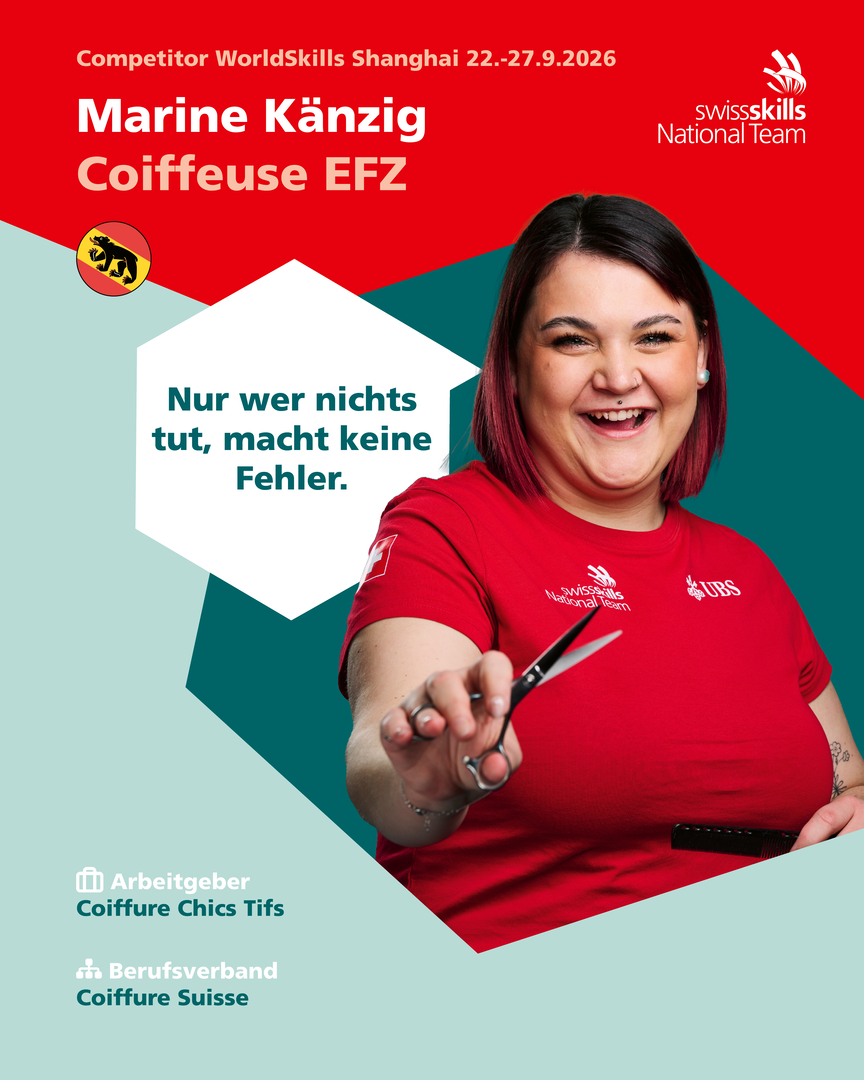 Die Mitglieder des SwissSkills National Teams sind weit mehr als Wettkämpfende. Sie sind Botschafterinnen und Botschafter ihrer Berufe. Sie zeigen Jugendlichen, wie attraktiv, anspruchsvoll und vielseitig eine berufliche Laufbahn sein kann. Gerade für die Coiffeurbranche ist die Teilnahme von Marine Känzig deshalb ein starkes Signal.