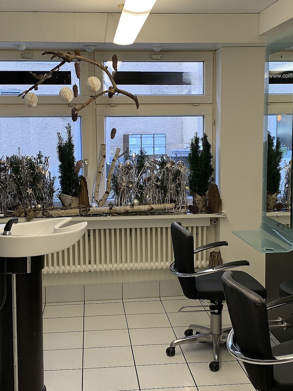Komplette Betriebseinrichtung mit acht Arbeitsplätzen mit jeweils einer schwenkbarer Rückwaschanlage pro zwei Plätze und alle erforderlichen Geräte, wie Hairmaster, Dampfhaube, Manicuretisch, Waschmaschine und Tumbler, Kasse, Computer, Coiffure-Software, Telefon, Musikanlage, Kühlschrank, Kaffeemaschine und kleines Warenlager vorhanden.